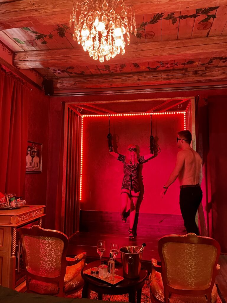 Velmi brzy budeme otvírat ruský pokoj, který bude dosud nejdrsnější. Umístili jsme tam klec a nad postel obrovské zrcadlo. V pokoji jsou připravené taky různé pomůcky, jako jsou pouta, bičíky nebo roubíky.