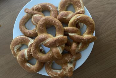 Tyto tradiční preclíky bavorského typu mají krásně hnědý povrch a ...