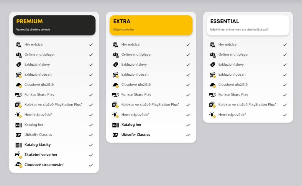 Služba PlayStation Plus je nově rozdělena do tří nových členských tarifů – Essential, Extra a Premium. Pojďme si blíže představit, co každý tarif obsahuje.