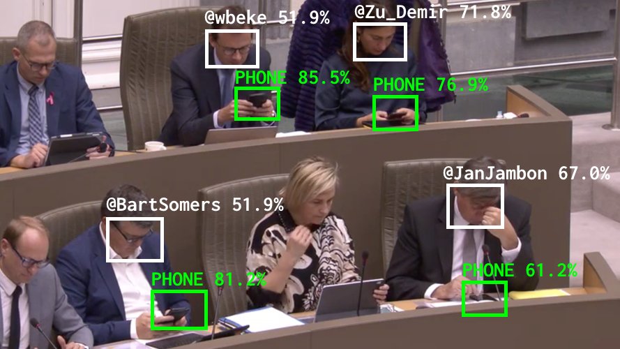 Digitální umělec Dries Depoorter vytvořil chytrého bota, jenž dokáže automaticky rozpoznat všechny nesoustředěné politiky, kteří se místo projednávání státních záležitostí raději dívají do telefonu. Umělá inteligence je následně „napráší“ v příspěvcích na sociálních sítích. To vše v reálném čase.